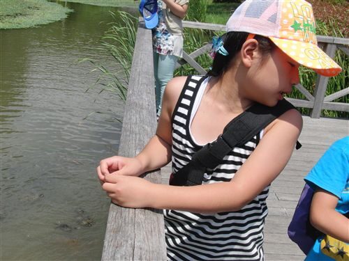 今日で 横須賀での夏休は 終わりです 帰りたくないで~す 朝の宿題の後に 横須賀のYRPにある 水辺の公園に行って来ました ボスが 公園の管理人さんの許可を取り 鯉・亀・鴨に餌をあげました コンビニで買った食パンです 沢山の鯉や亀が集まってきて 餌お食べますが 小さな亀はなかなか 餌がとれずに そばに 投げてあげるのですが 鴨や鯉に取られてしまいます 小さな亀が餌を取れたときは とてもうれしかったで~す もっと・もっと餌を持ってきてあげればよかったと 思いました とても 静かな公園です ジョギングのお姉さんやおじさんもいて 色々な事を 説明してくれました 鯉・亀・鴨 可愛かったですよ